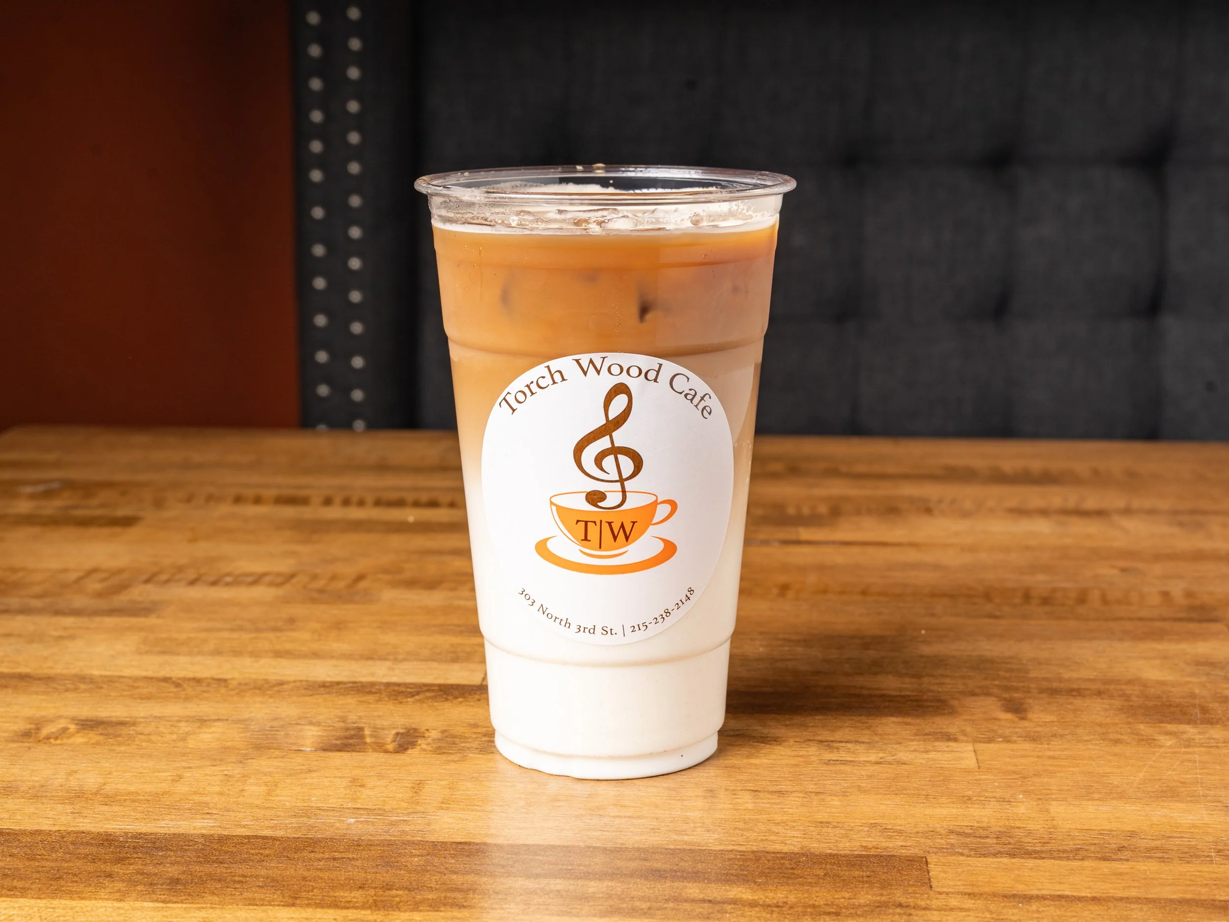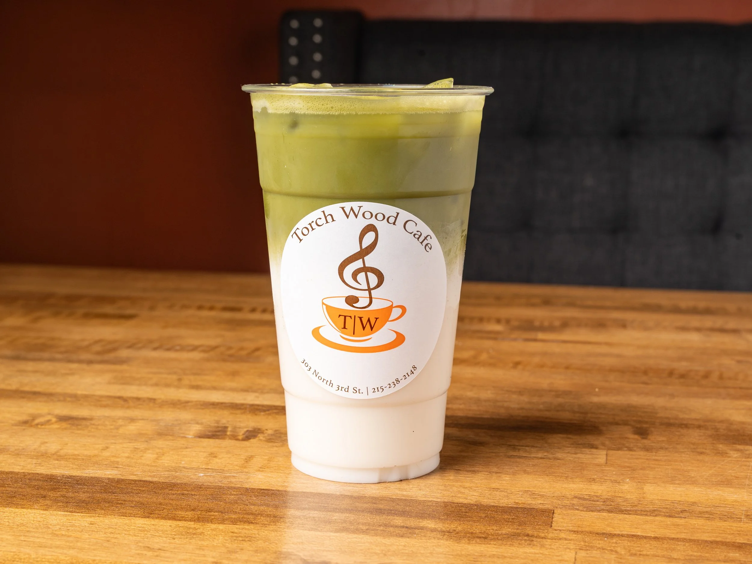Organic Matcha Tea and shot of Espresso in Almond Milk with Whole Cane Sugar and Ice
