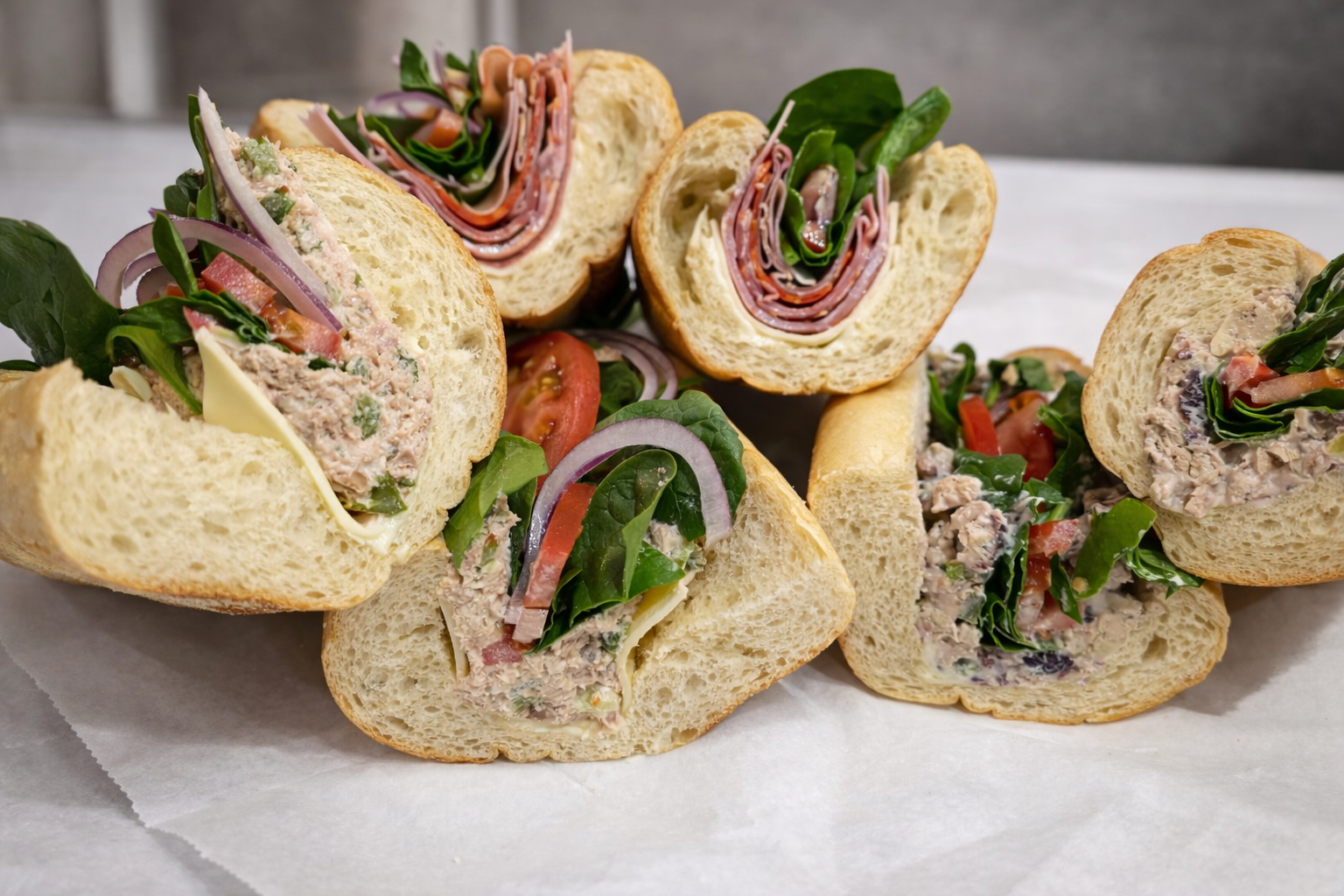 Prosciutto, provolone cheese, spinach, tomatoes and avocado on country white bread.